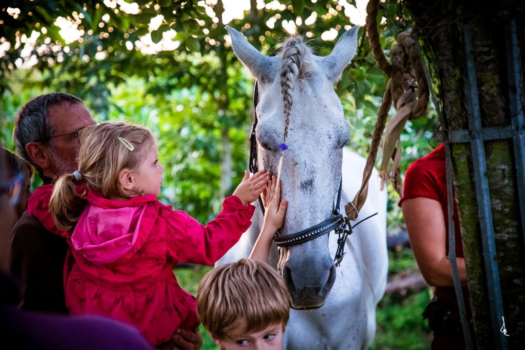 Elle offre également la possibilité de se rapprocher des animaux au travers de la médiation animale et de stages ou la pratique du yoga, la méditation, les soins à l’autre se mêle à l’approche des chevaux.