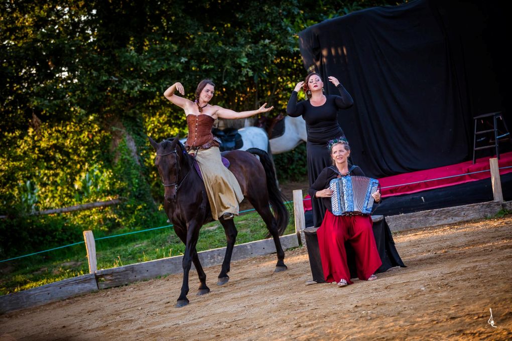 De la musique tzigane au chants créées in situ, de la danse aux arts du cirque ,les chevaux donnent le tempo des créations. Ici on écrit et compose des chansons , des chorégraphies, des contes et des spectacles pour les chevaux et les artistes , pour exprimer le respect de l’autre et les émotions.